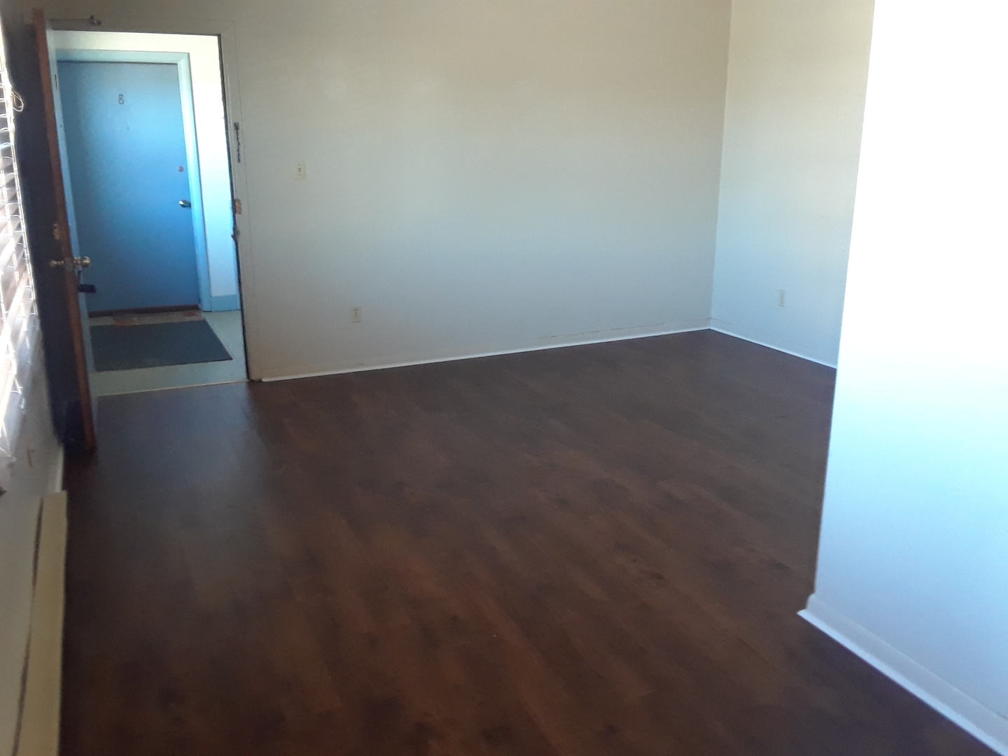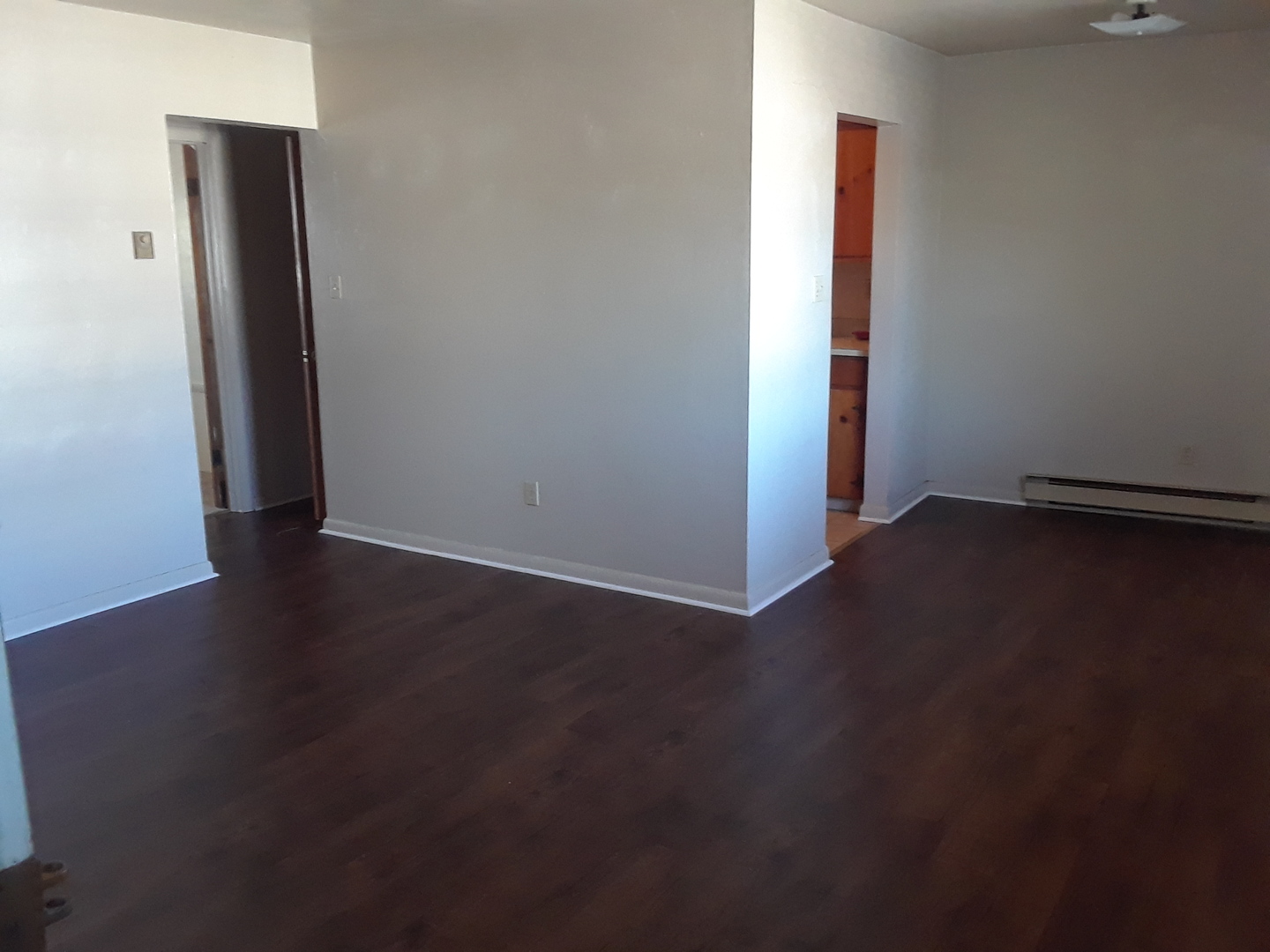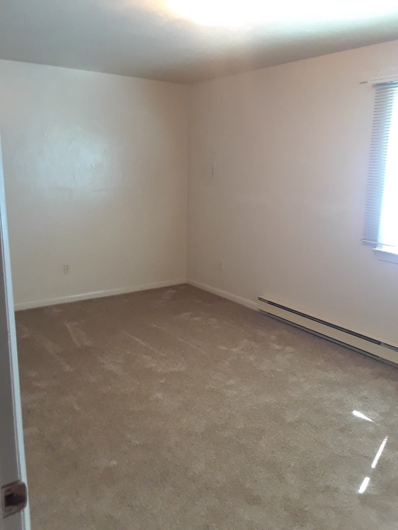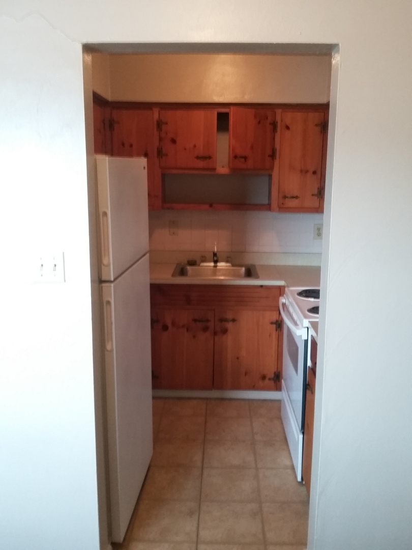 Carpeted Bedroom, Galley style kitchen, thru wall AC system. Baseboard heat.